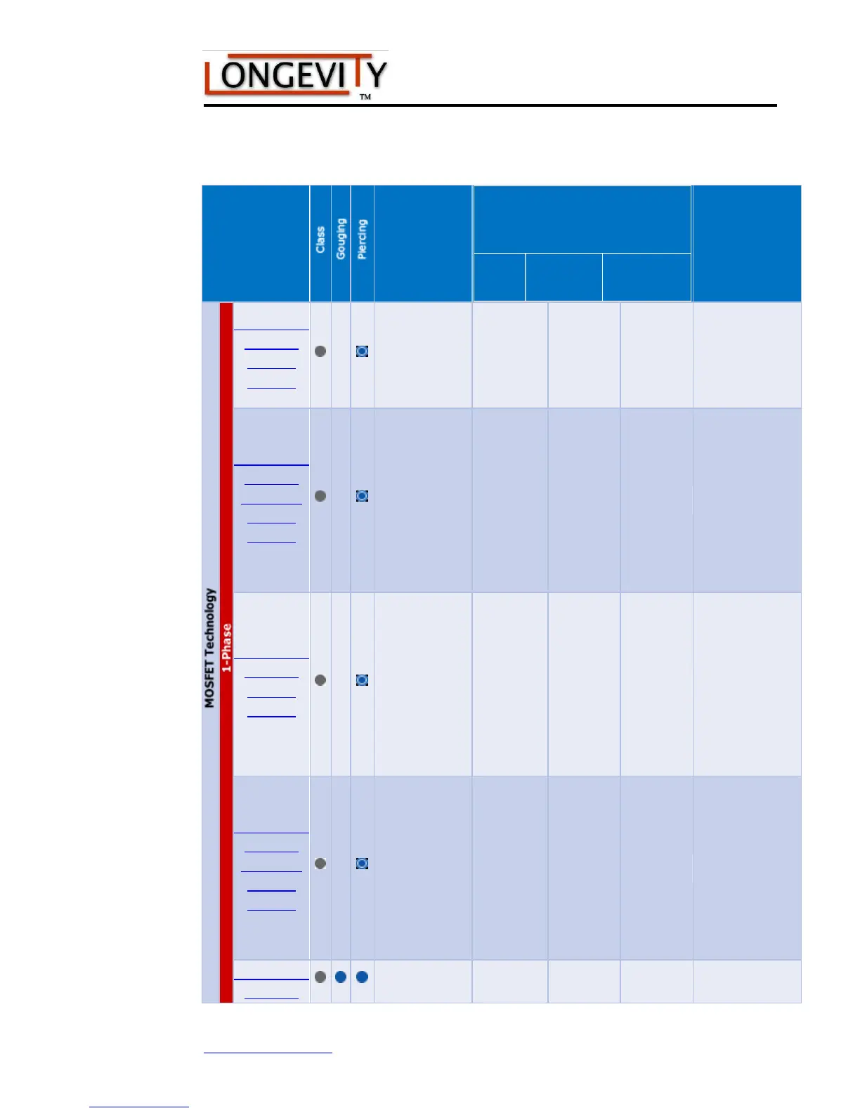 Longevity Forcecut 40D - Summary Chart of All LONGEVITY Plasma Cutters