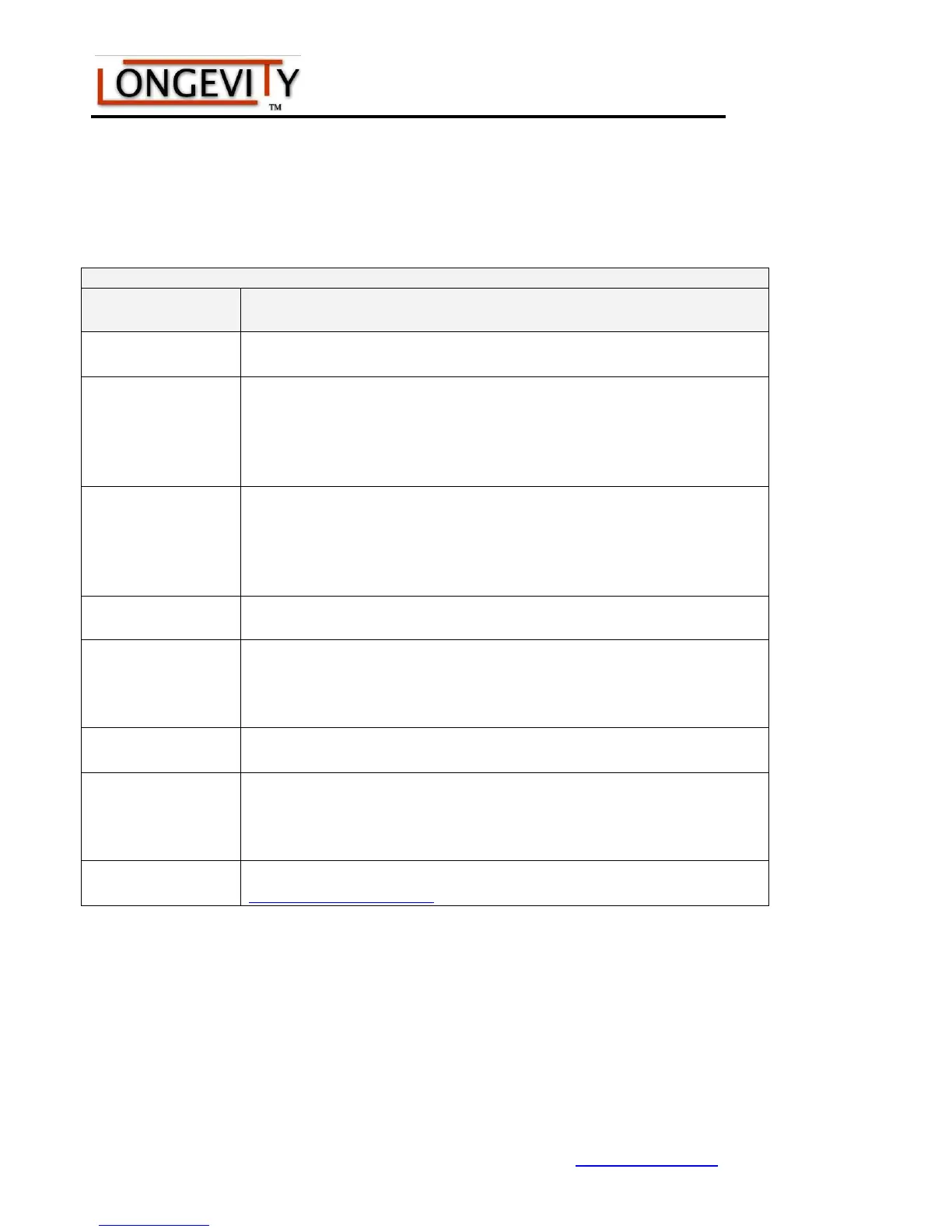 Contact LONGEVITY Toll Free 1-877-566-4462 or via email at