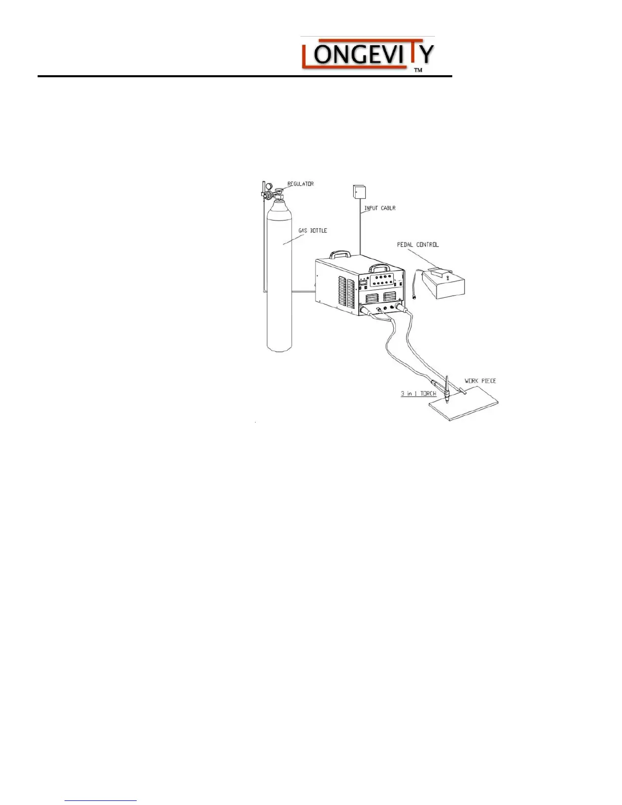 2. Plug the torch into the unit on the left side as pictured. Either plug the pedal or the remote 7 pin