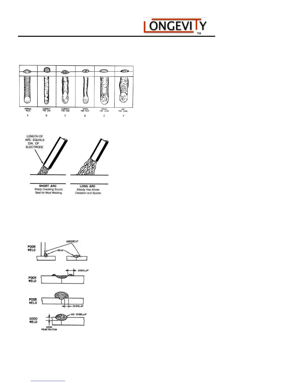 produces uneven deposits with irregular ripples. The recommended length of the arc is equal to the diameter of