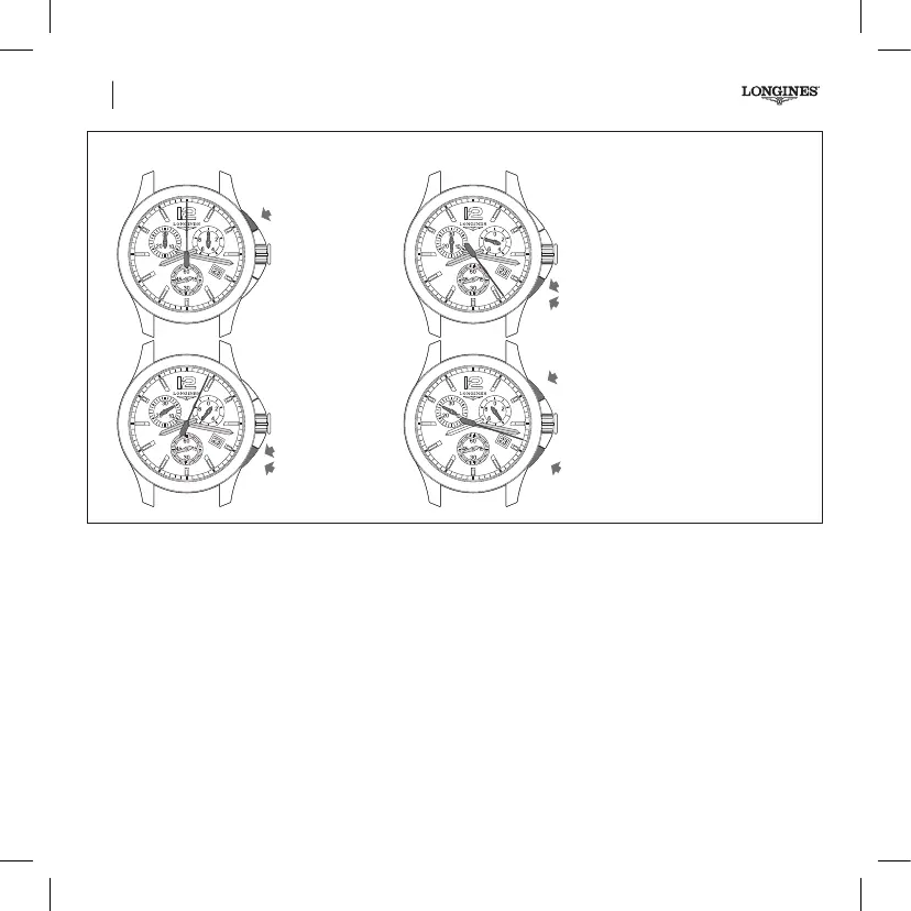 • Premir novamente o botão B. Os ponteiros do cronógrafo alcan-
