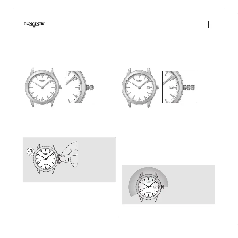 Træk kronen helt ud i position 2. Indstil viserne ved at dreje kronen