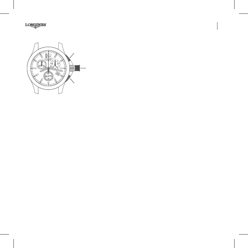 • Tire de la corona hasta la posición intermedia 2; las 3 agujas de