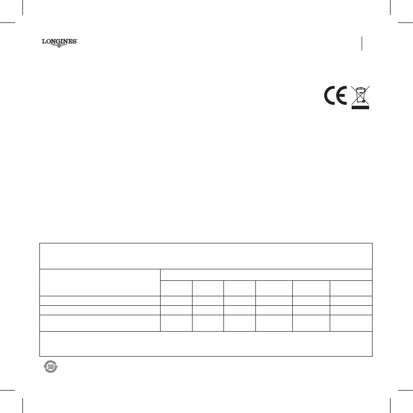 下表中所列物质仅存在于腕表内部,不会和佩戴者接触。因此,并不会对腕表的佩戴者产生健康或安全问题。