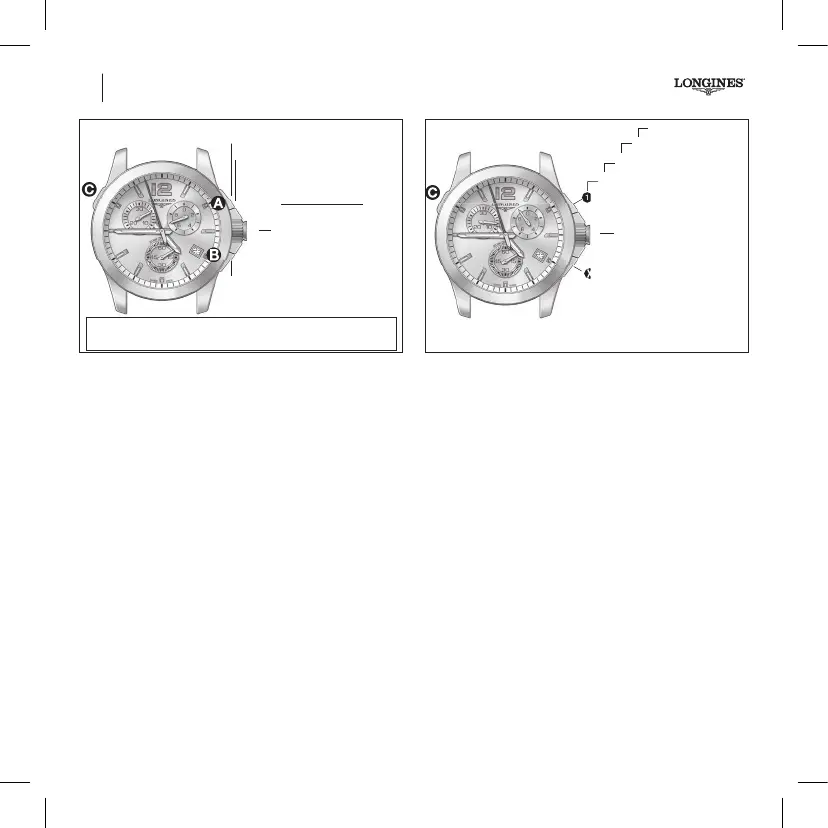 (push-piece B) to nish timing, and return the chronograph to