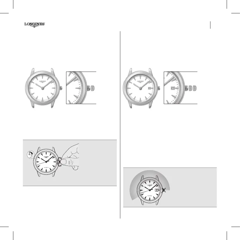 Estrarre la corona portandola in posizione 2. Regolare l’ora ruotando
