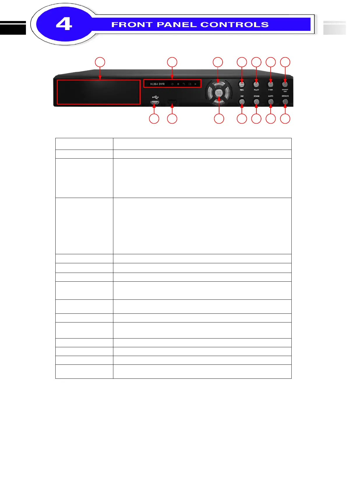 ◄ / ◄◄ In SETUP mode, press to reduce value. In PLAYBACK mode,