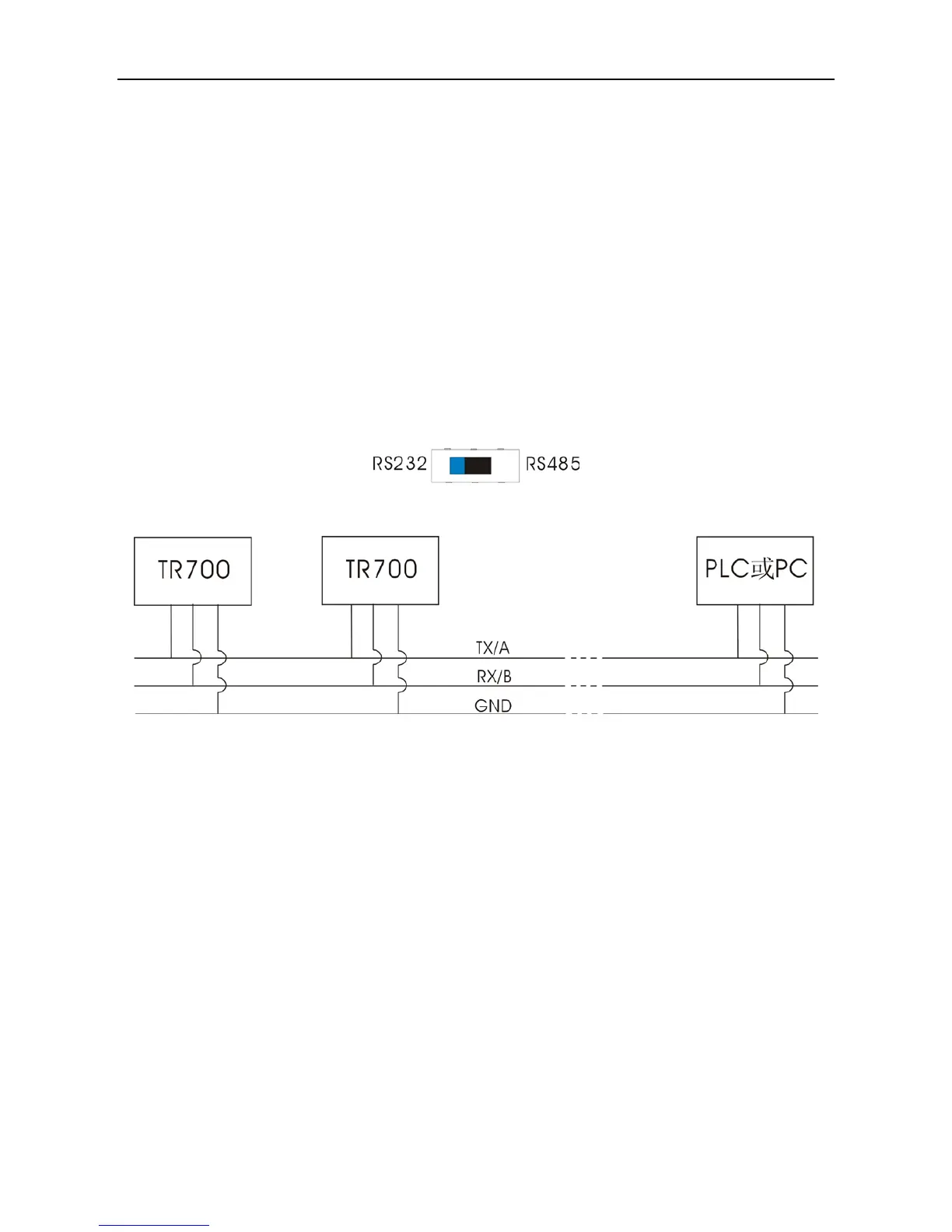 communication modes of the TR700’s serial interface 1, RS232 and RS485, are optional. It is chosen