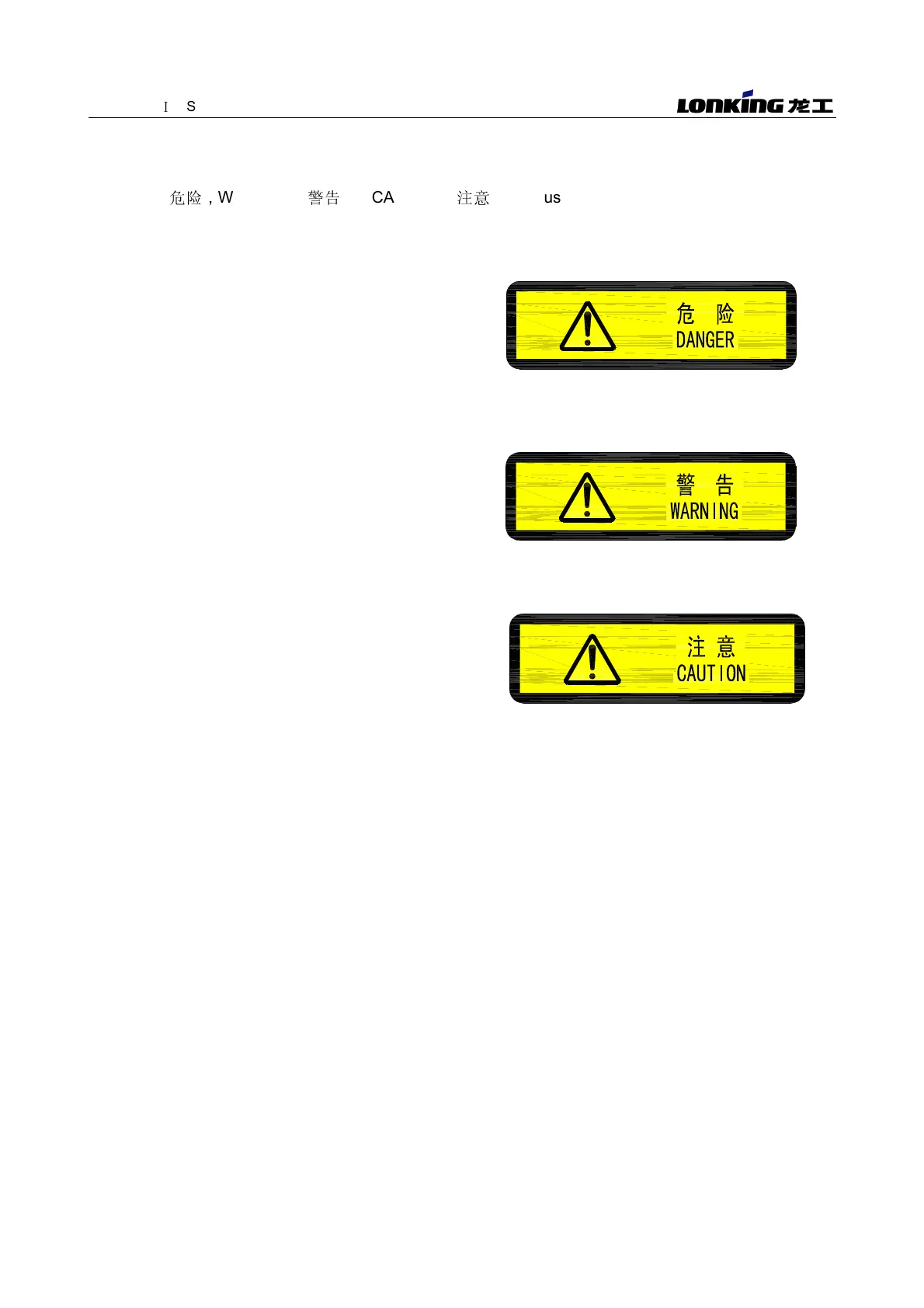 1.3.6 Safety signal words listed above may not appear in some warning labels of the machine.