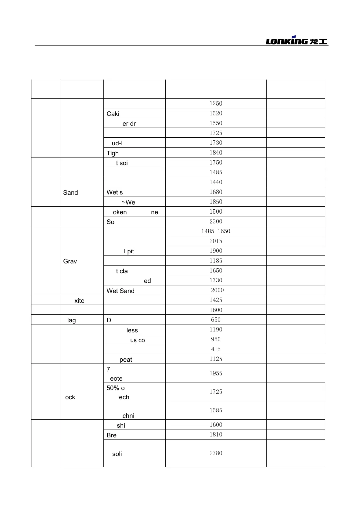 Lonking CDM312 - Appendix: Reference Table of Density of Common Materials