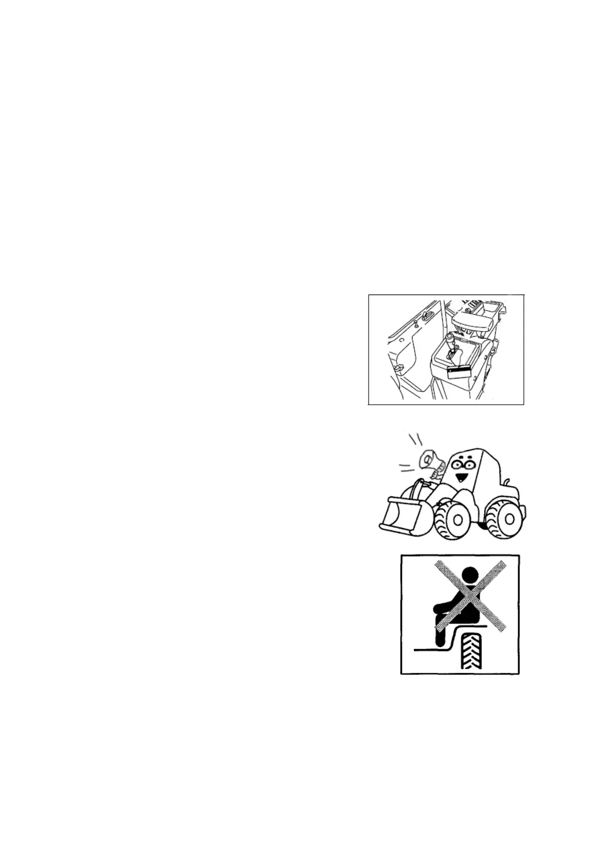 can start the engine only in the cab. Strictly prohibit starting the engine with starter