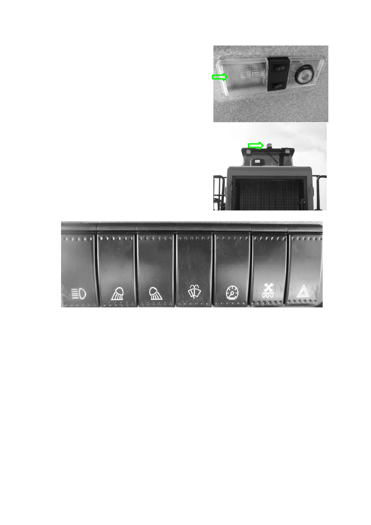 2. Front working lamp switch: The front working lamp controls the ON and OFF state of the