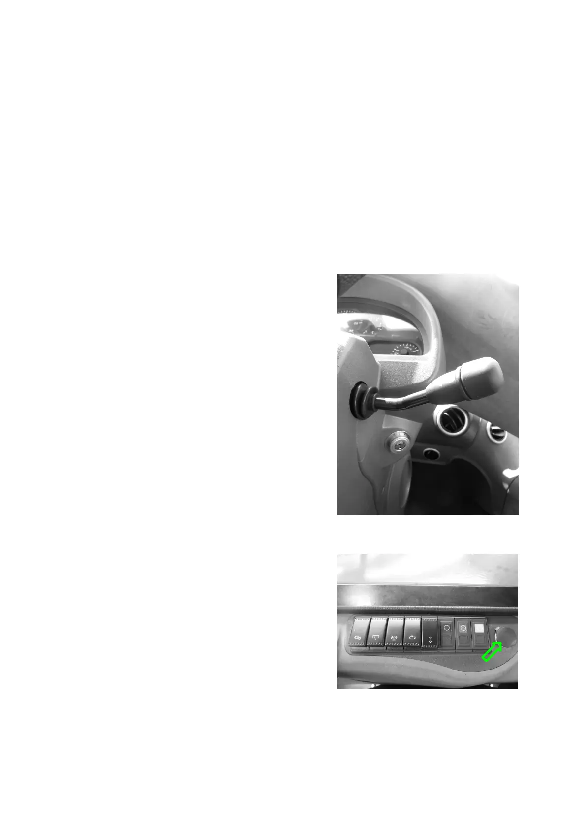 The loader has the control switches for turning lamps and full-beam/low-beam headlights.