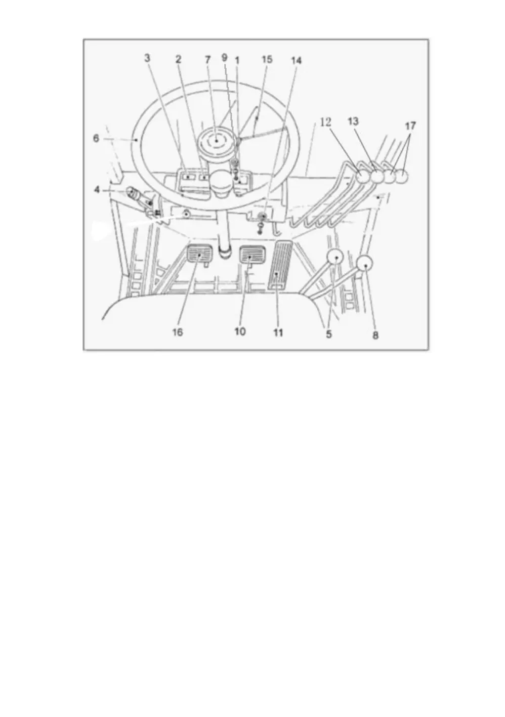 4. Parking brake handle 10. Braking pedal 16. Clutch switch