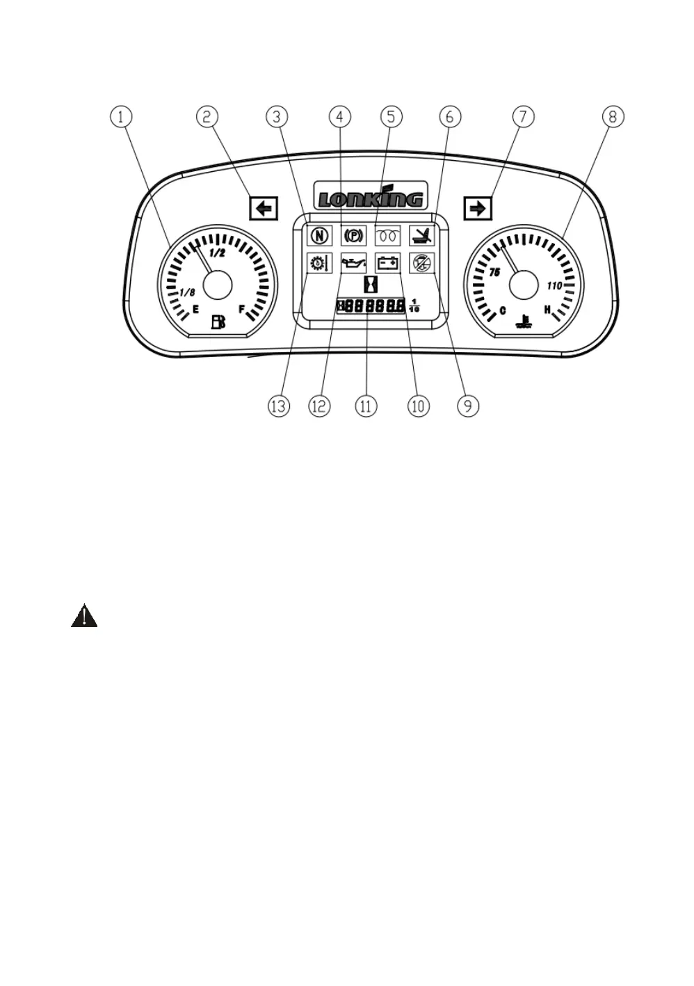 When move the start switch to "on" position, the gauge shows the operator the fuel capacity that