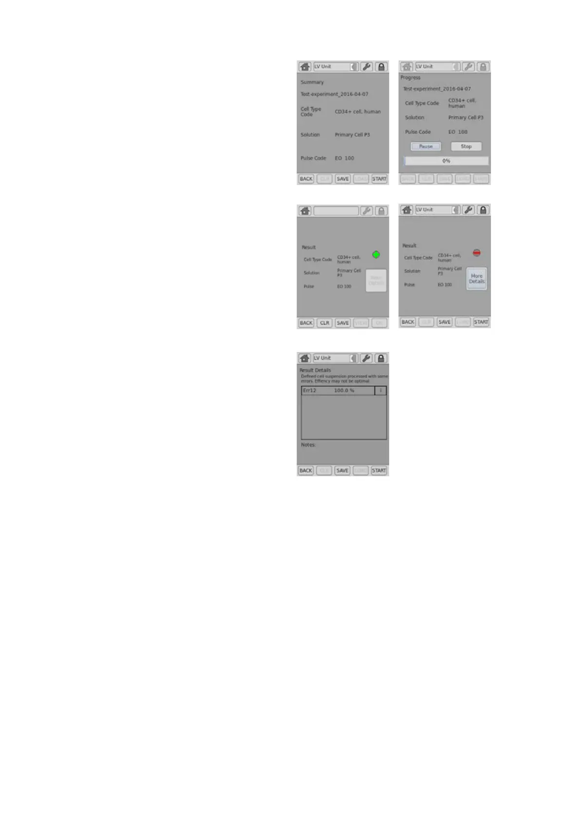 Figure 2.22: Experiment progress (LV Unit, 1 mL Nucleocuvette™ Cartridge)