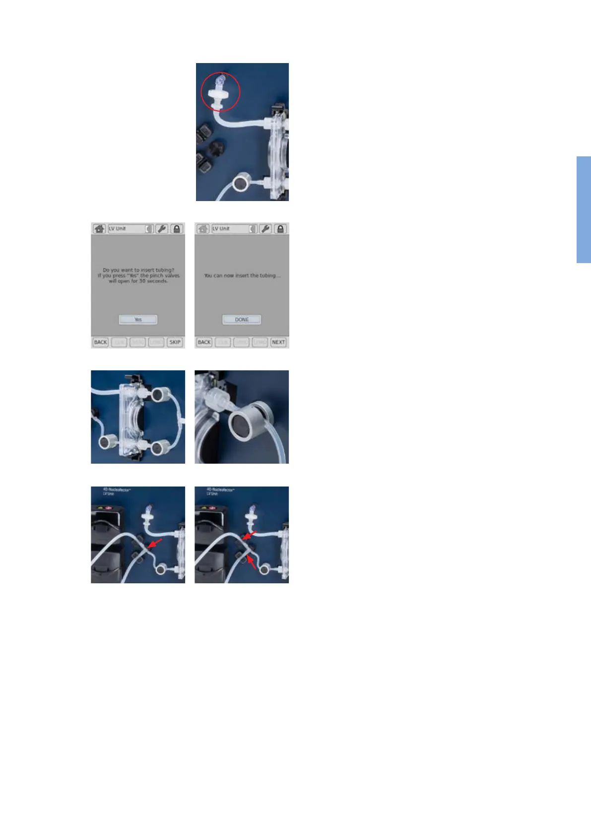 5. Insert the tubes into the three pinch valves (gure 2.23, D). Ensure