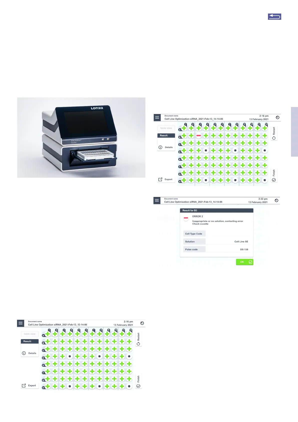 Figure 2.30: Detail screen for experiment results. (A) Selection of well is
