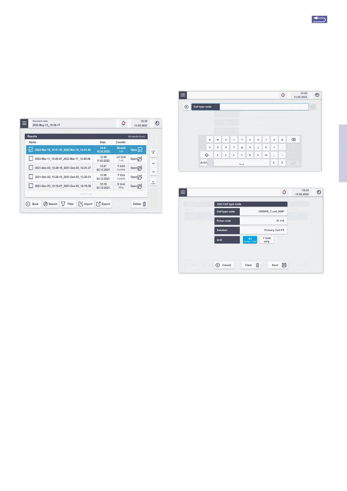 directly from the experiment screen (see unit-specific
