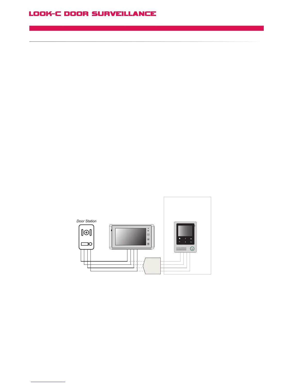 The diagrams on the following pages show connections for Look-C 4 Wire Monitors and door cameras