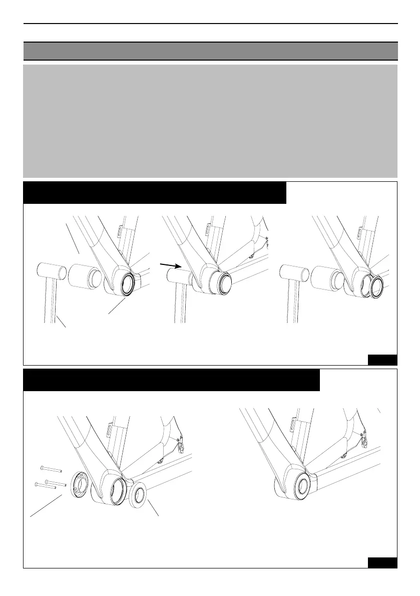 • Na plaatsing van de trapas en de lagers, controleer of de binnenvlakken van de trapaskast van het frame vrij