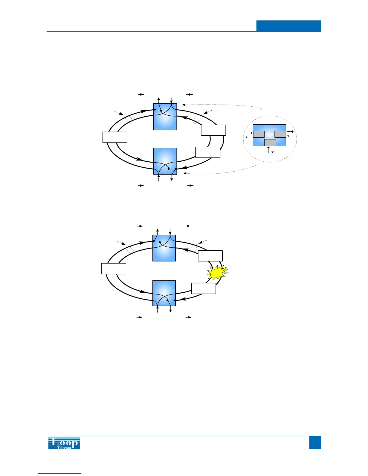 The diagram below illustrates the DS0 signal path in faulty condition. When the primary path is broken, the secondary path