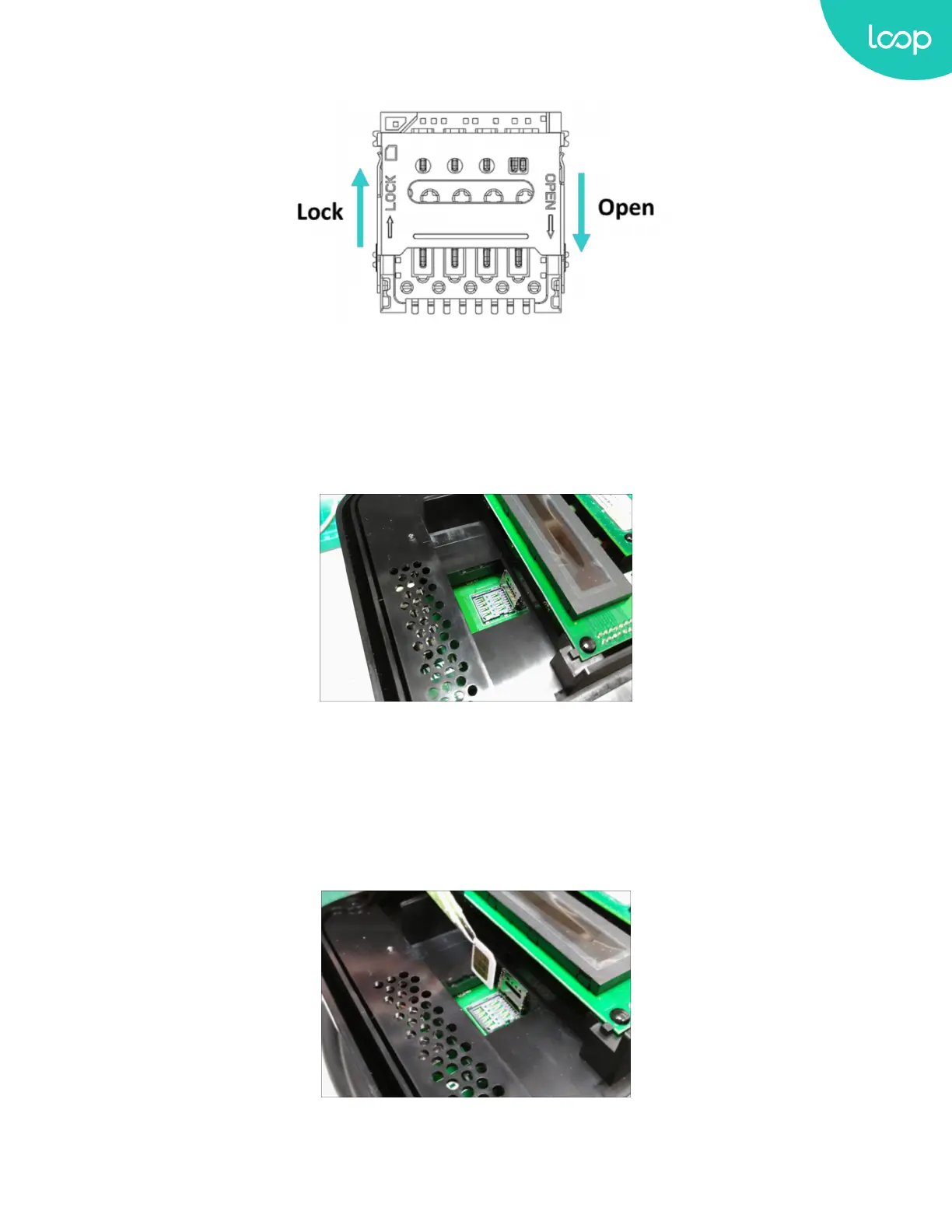 Figure 3-21 SIM card socket and cover Open/Close direction