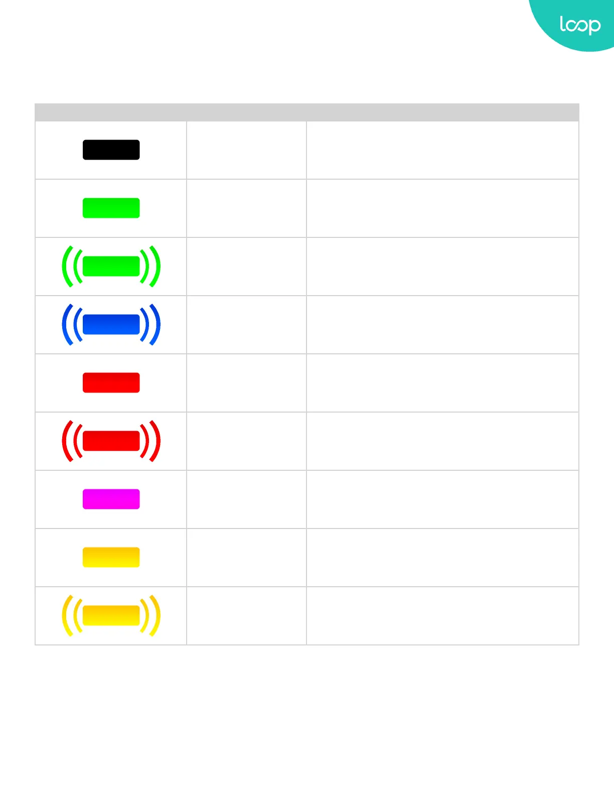 Table 21: Charging status indicators