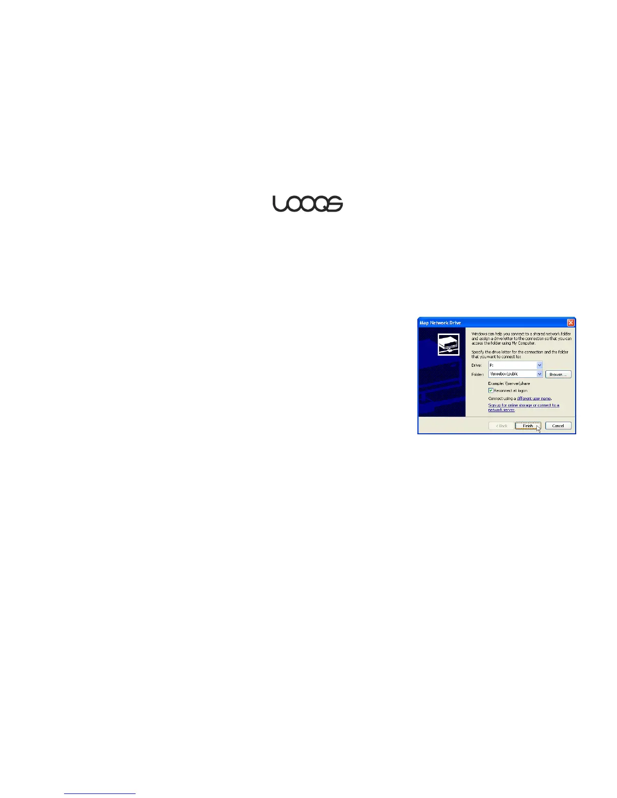 2. Select the drive letter you wish to use, enter the network address of the desired share,