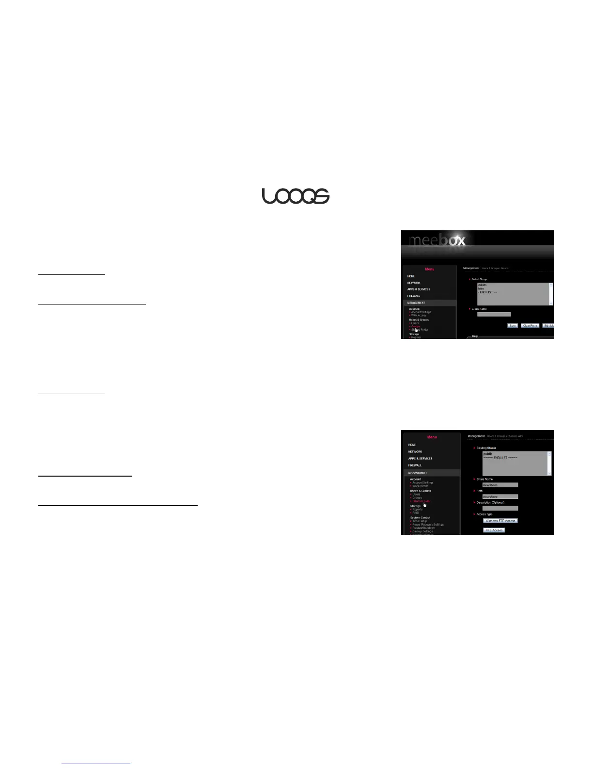(http://meebox:8090) and click Management > Users & Groups > Shared Folders (see