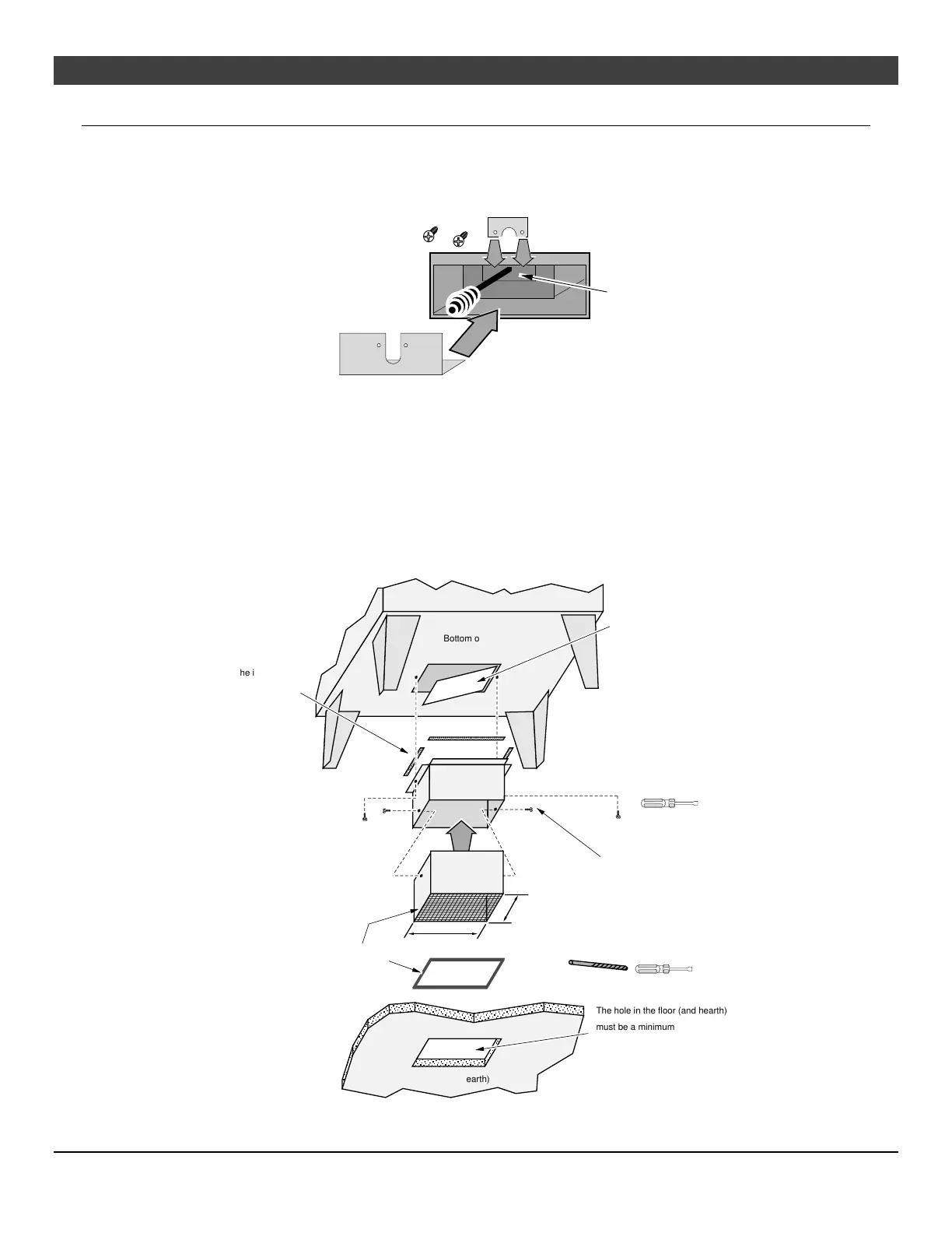 5 Slide the lower section down until it contacts the hearth. Attach the two sections together