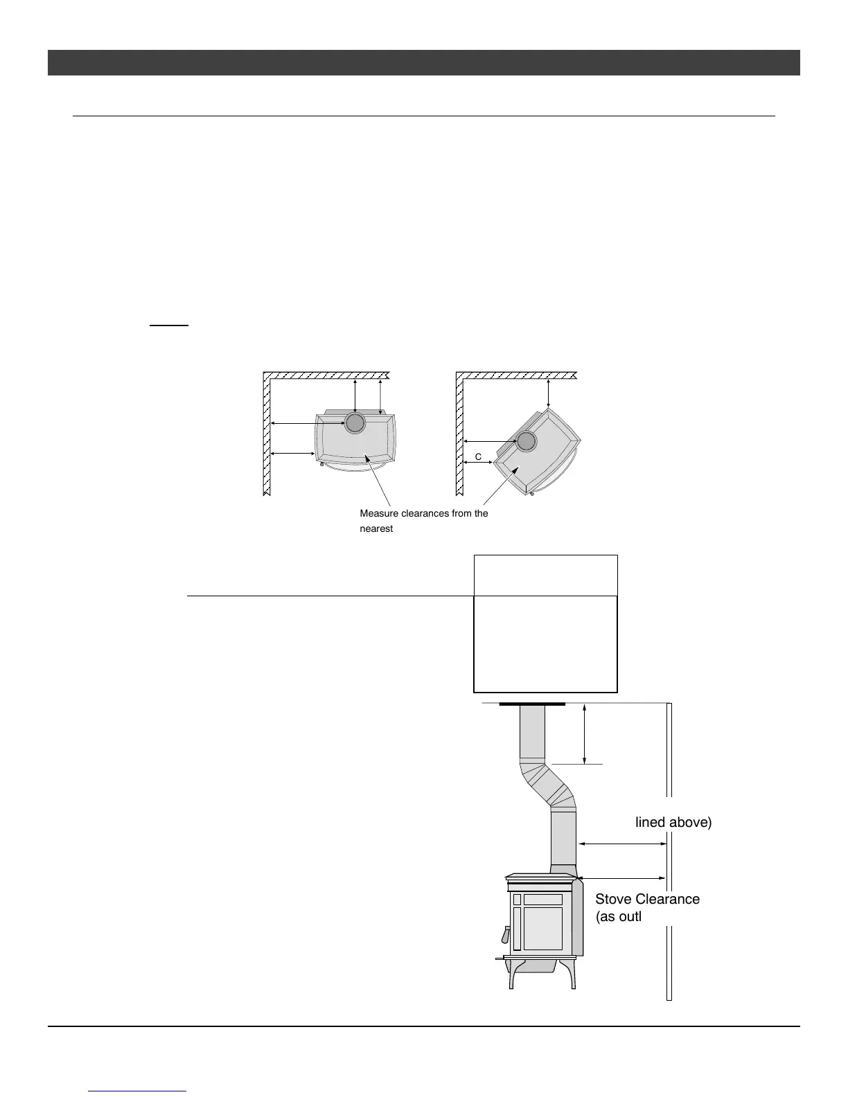 • Stove placement must maintain the following clearances to combustibles (drywall, furniture, etc.)