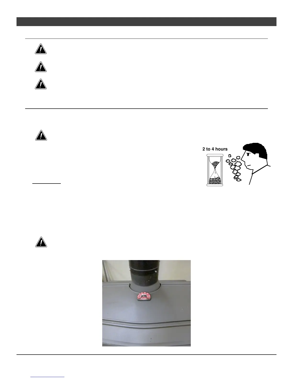 heater. Leave the door slightly ajar for the first fire and be careful when