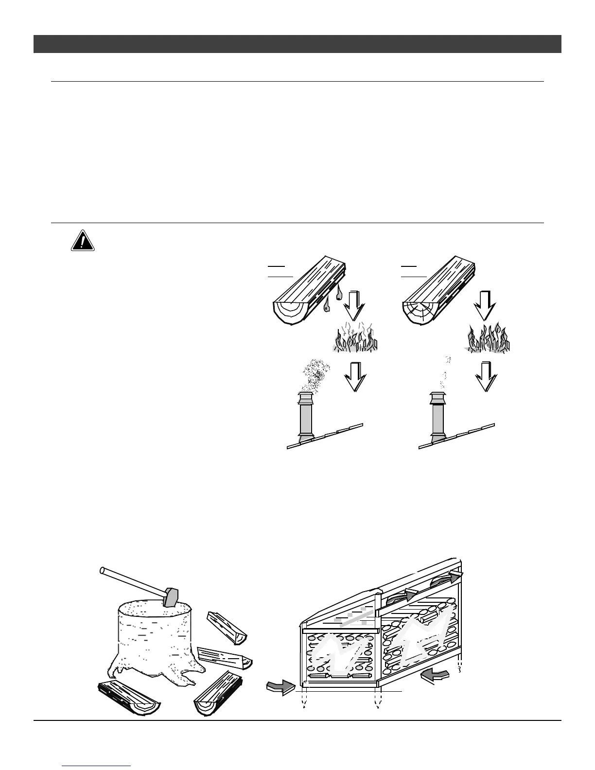 • Use smaller pieces of wood during start-up and high burns to increase temperature