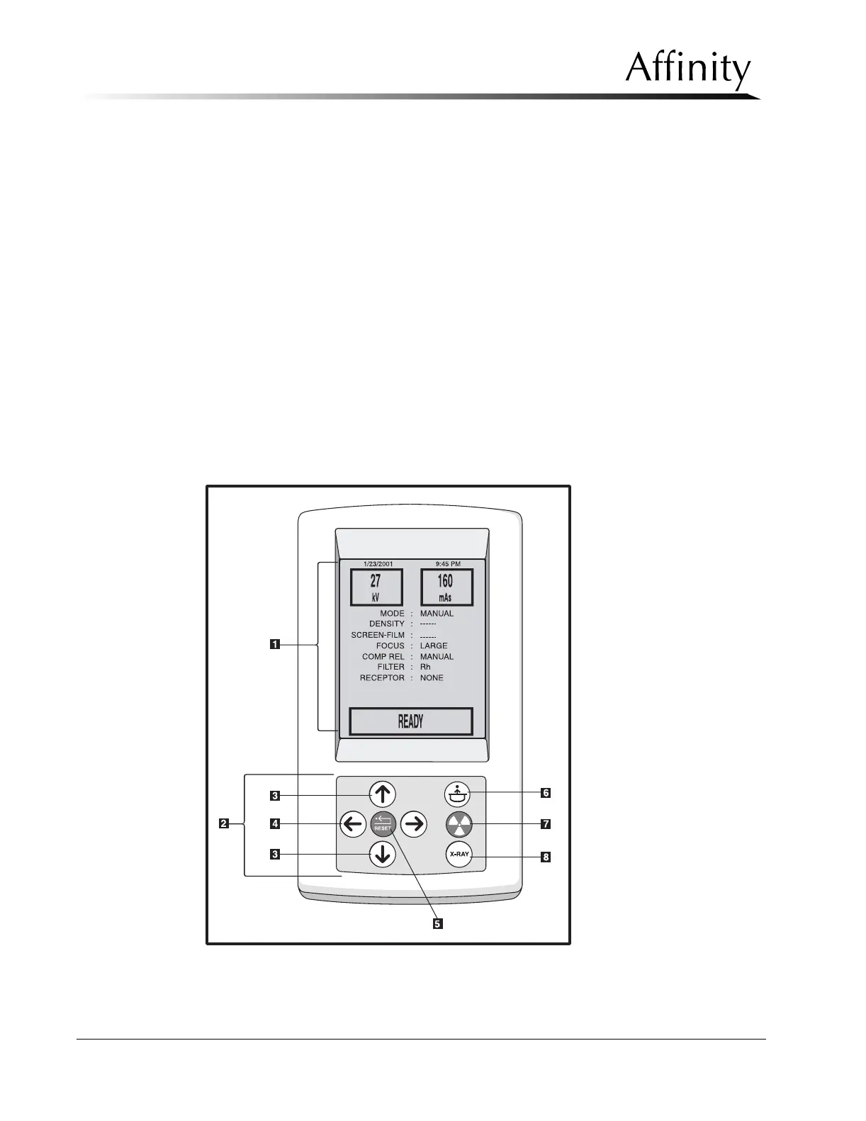 1. Display Screen - Displays the current exposure techniques and system settings.
