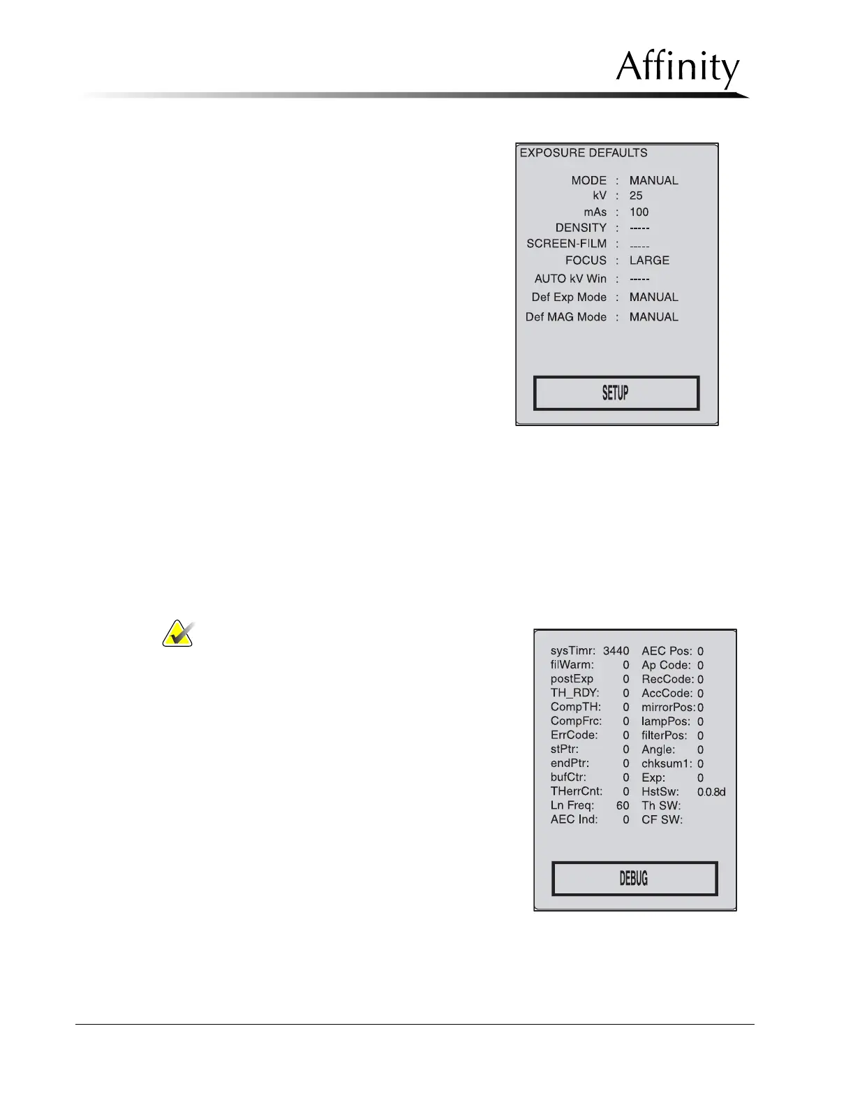 Screen. To select the Exposure Default Screen from the Run Mode Screen, press Reset +
