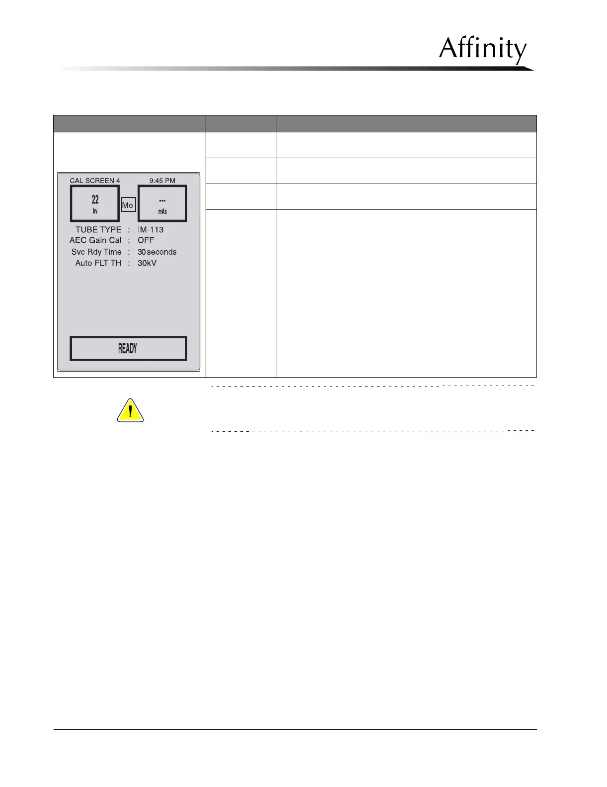 Table 4-2: The Calibration Screens