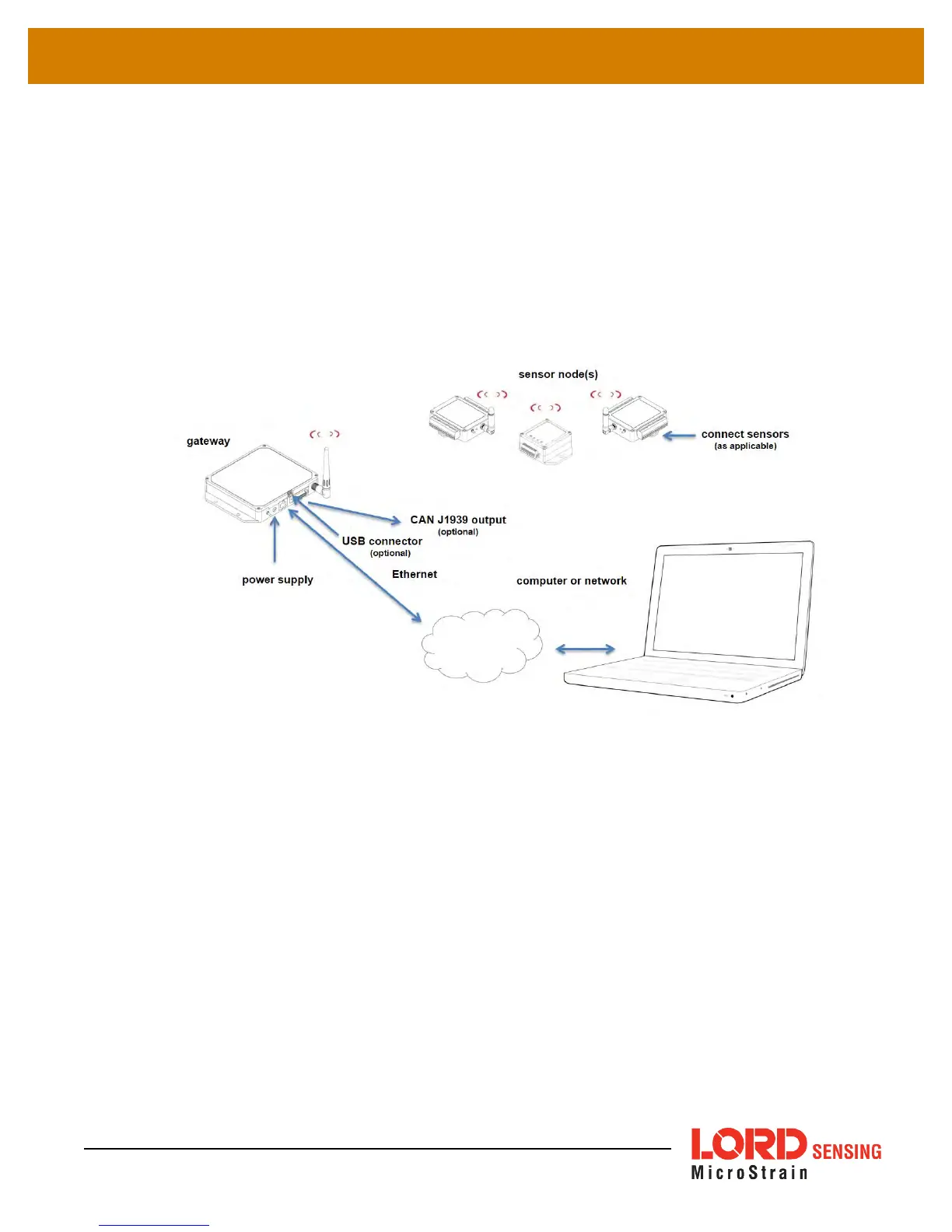 a LORD Sensing data gateway, and a host computer with access to the data acquisition software.