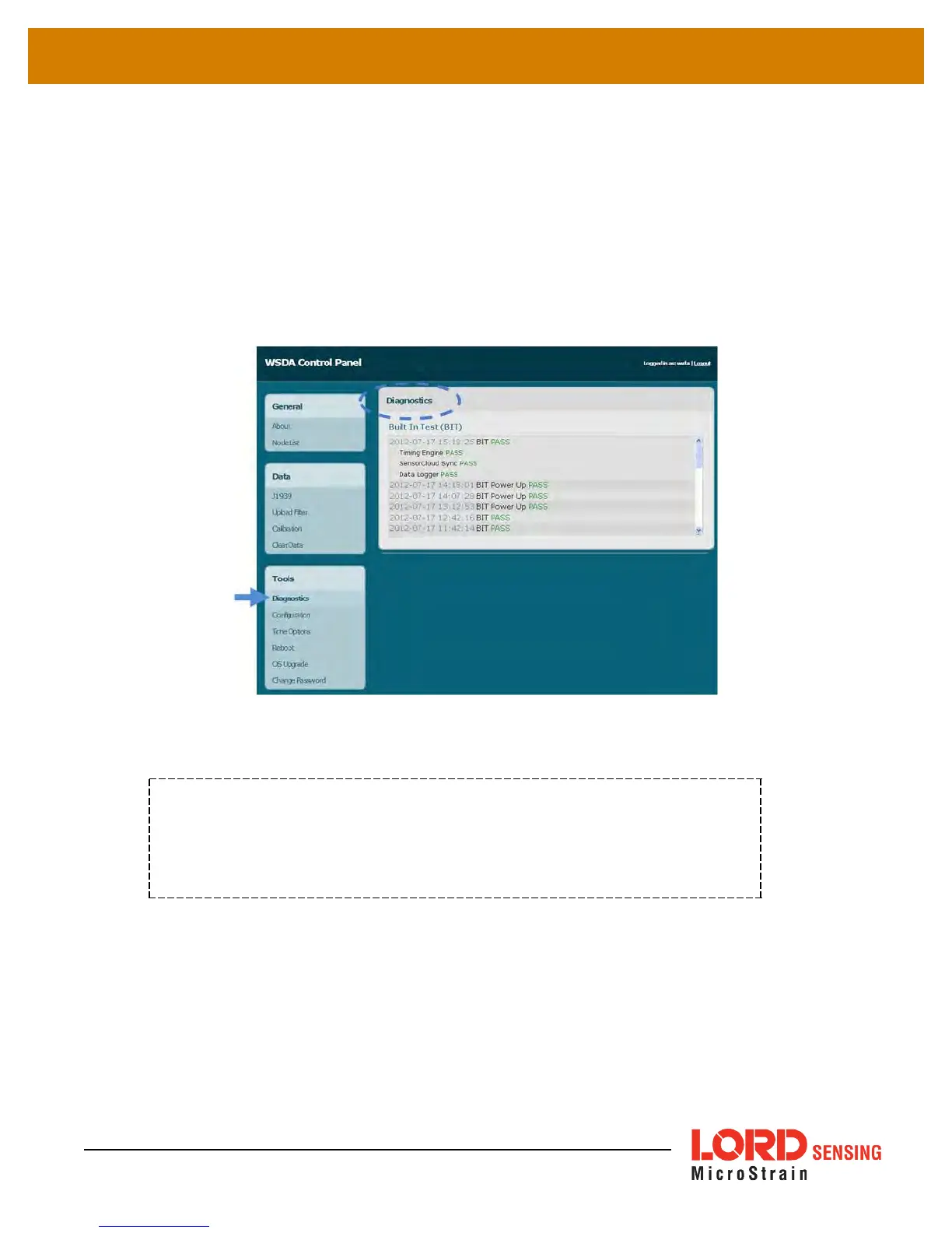 on. If errors are reported in the Diagnostics menu, contact LORD Sensing Technical Support (