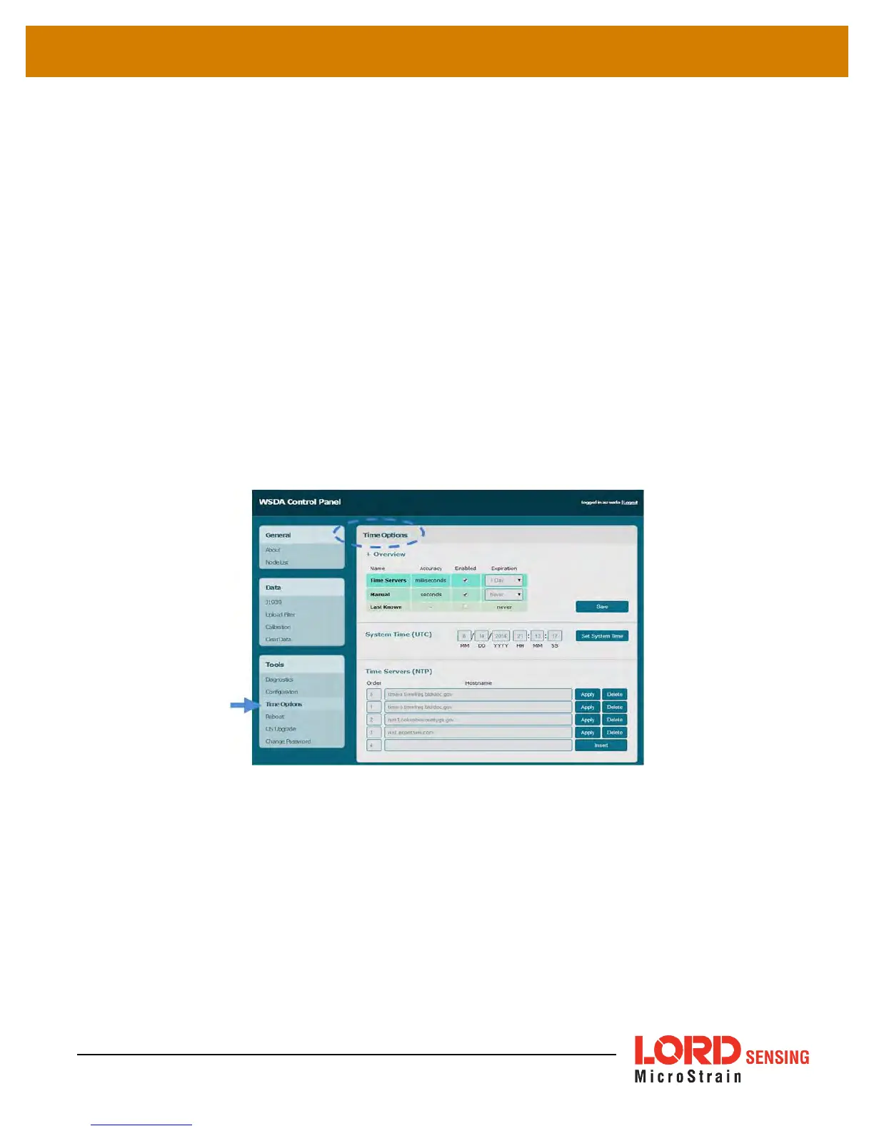 l Time servers allows the WSDA-2000 to synchronize with external servers that provide the