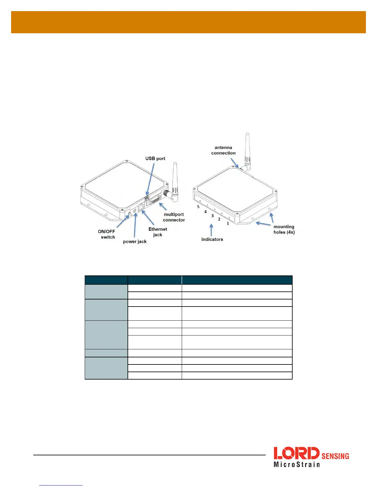 for attaching the gateway antenna, an Ethernet jack, a multi-use (multi-port) connector, and a USB