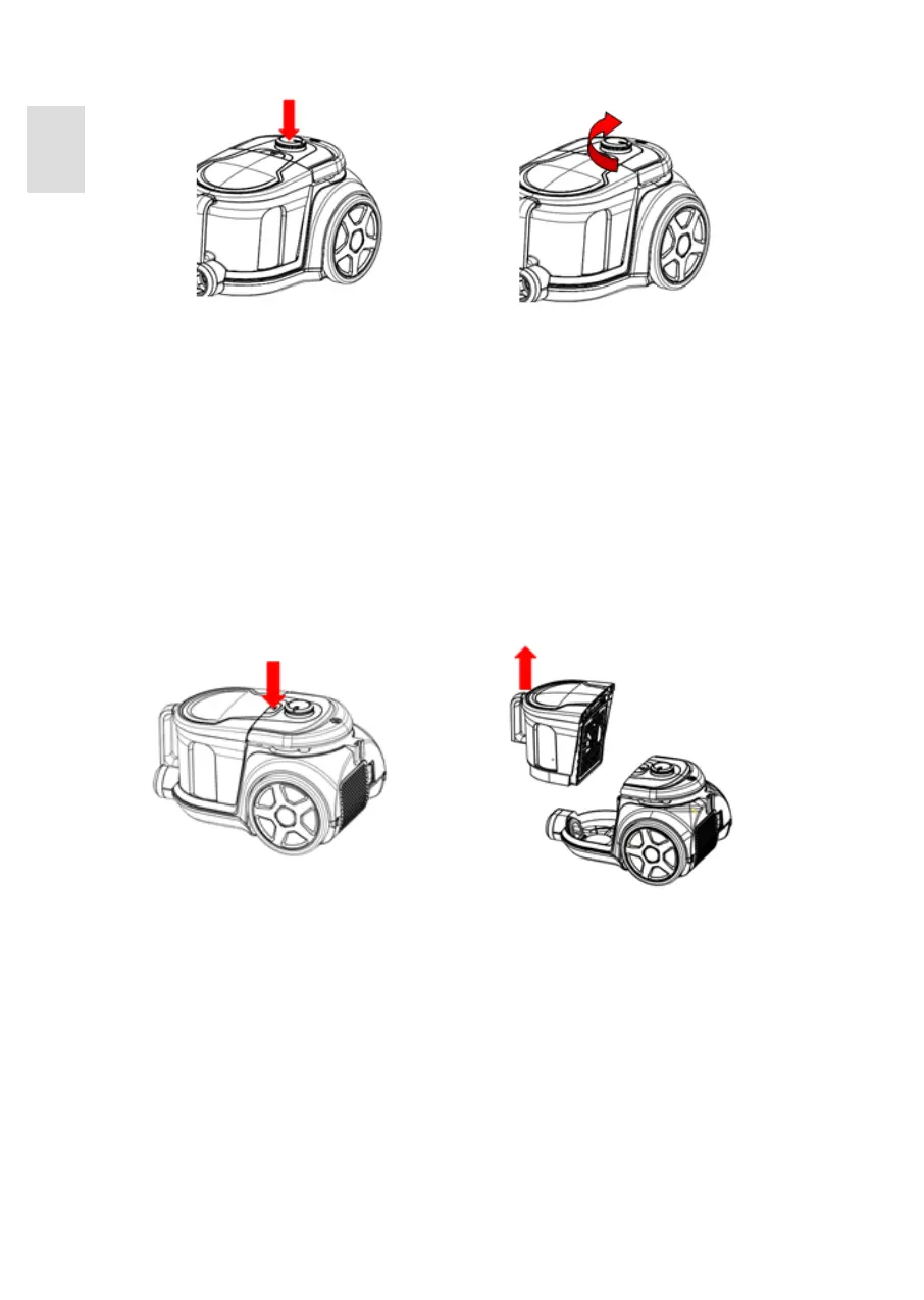 Abb. 6 Halten Sie den Handgriff des Staubbehälters halten und drücken Sie die Taste zum
