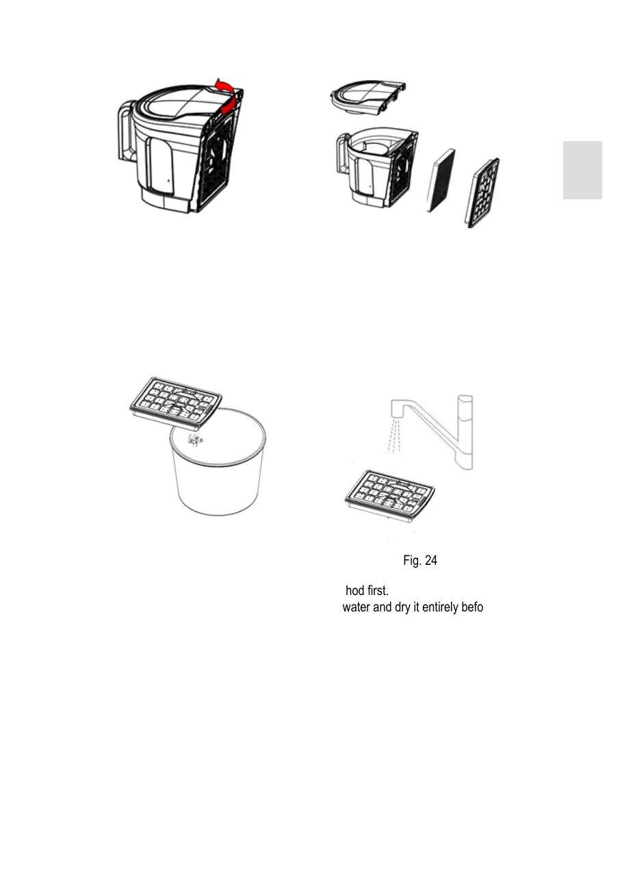 g) Fig. 24 Rinse the motor filter without sponge under water and dry it entirely before use.
