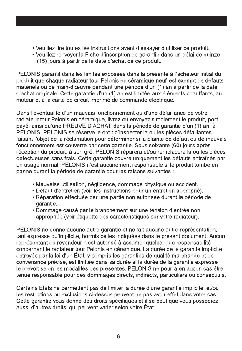 GARANTIE LIMITÉE D’UN (1) AN