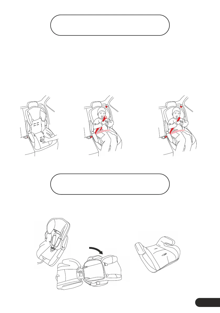 1. Place the child safety seat on the vehicle’s seat ensuring it is firmly pressed against the car seat