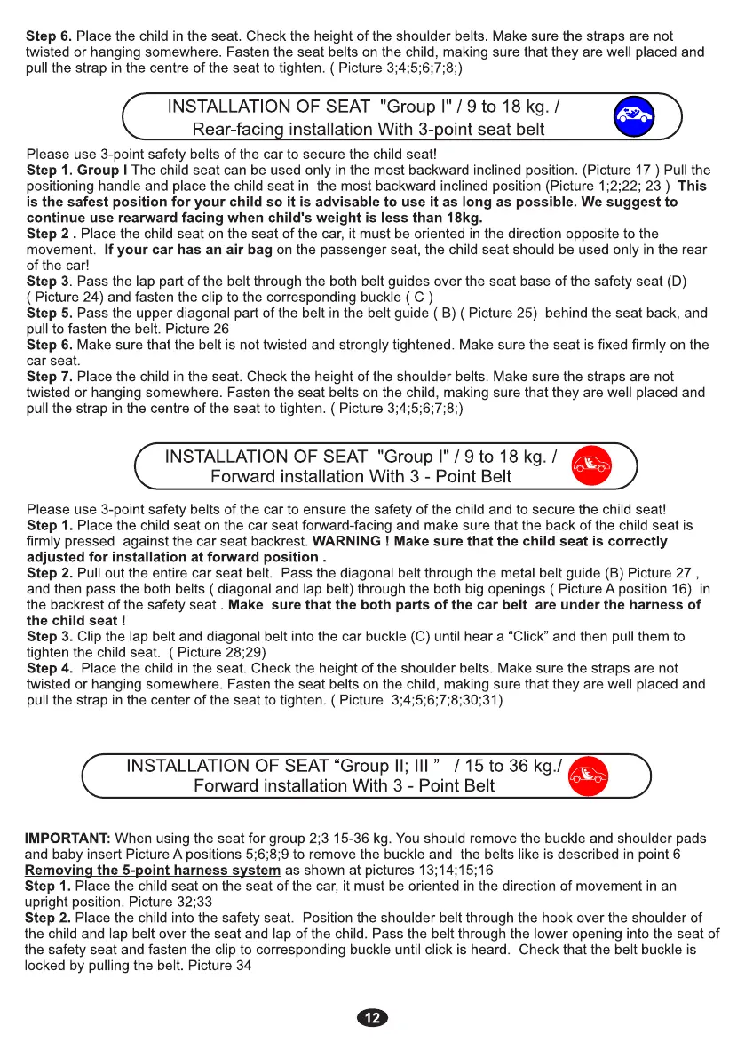 Lorelli MERCURY - Installation of Seat; Rear-Facing Installation with 3-Point Seat Belt; Forward Installation
