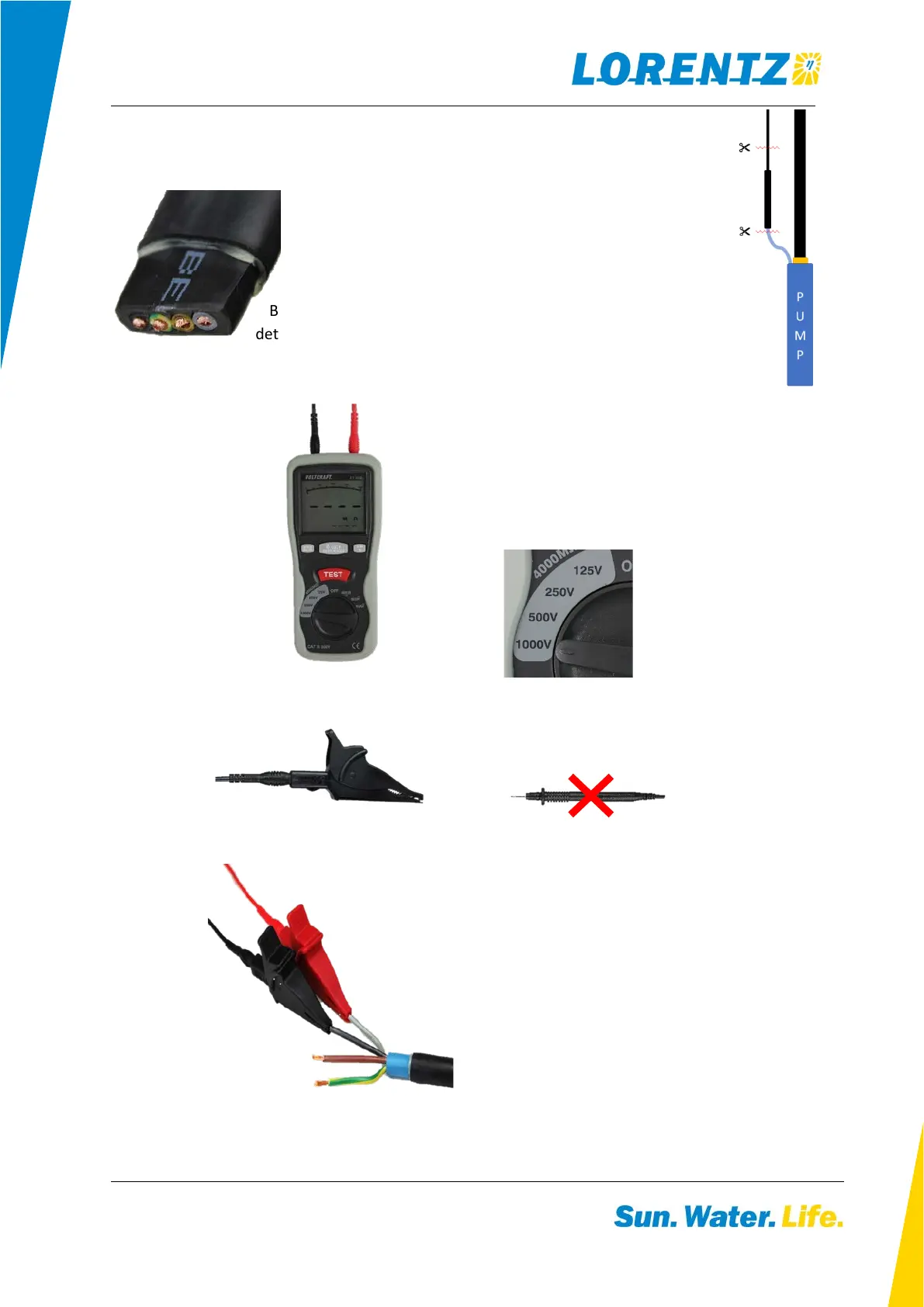 cable. Please keep additionally 5 to 10 cm of the submersible cable and remove the