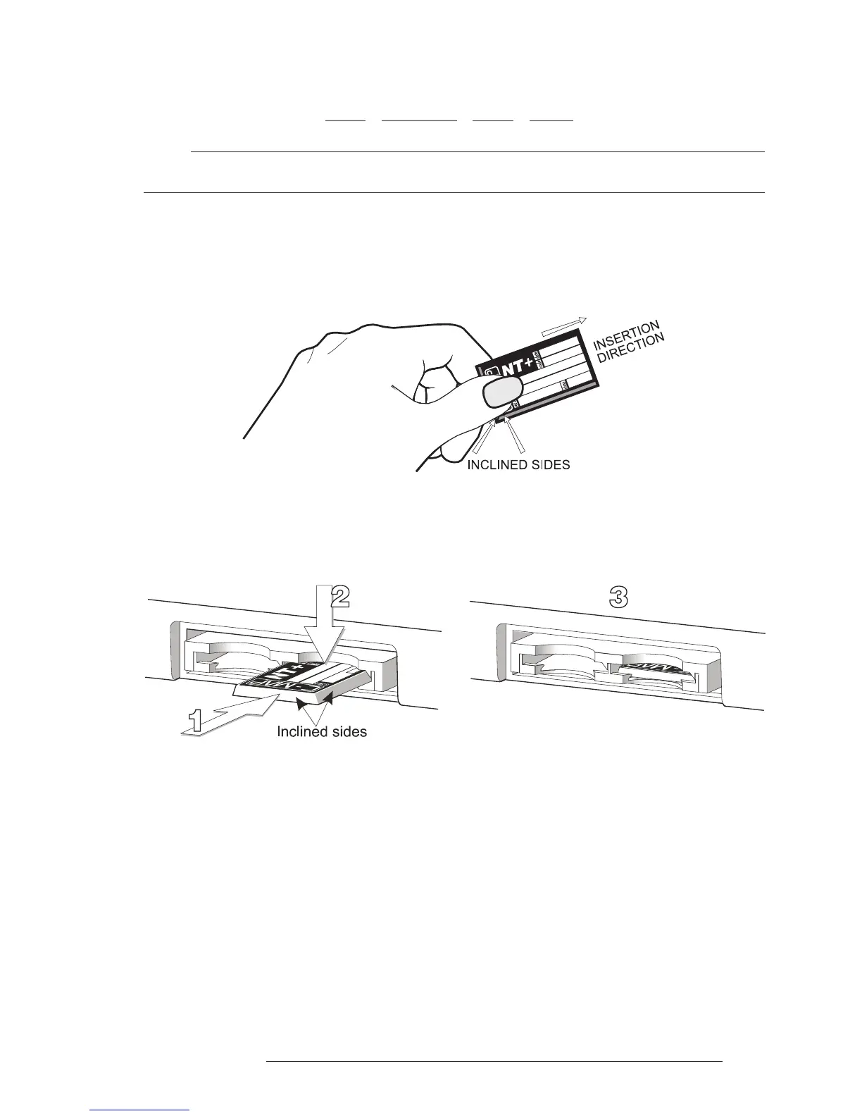 in as far as it will go, then move it to the bottom (2) to hold fixed into the slot (3).