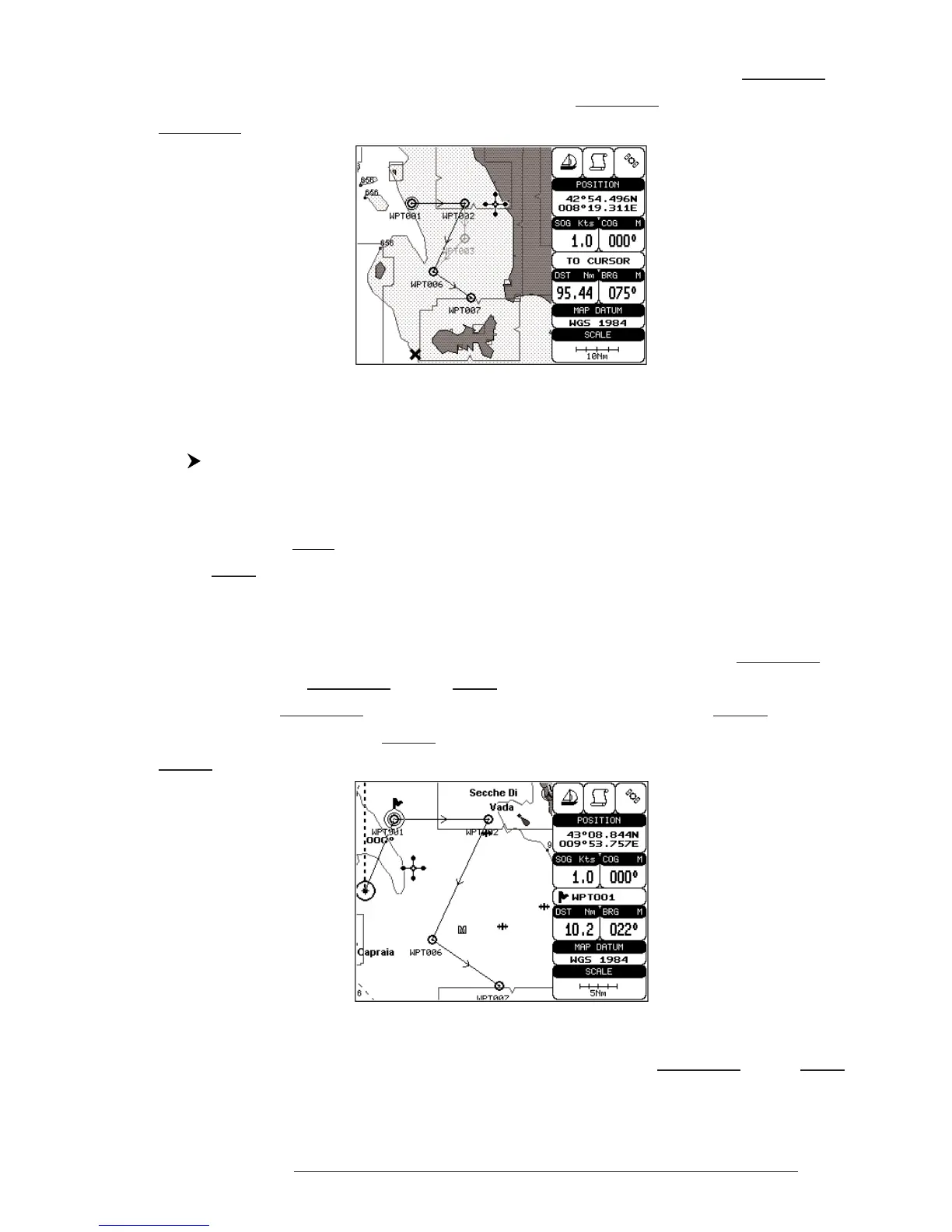 Once you have positioned the cursor on the desired starting Waypoint (it