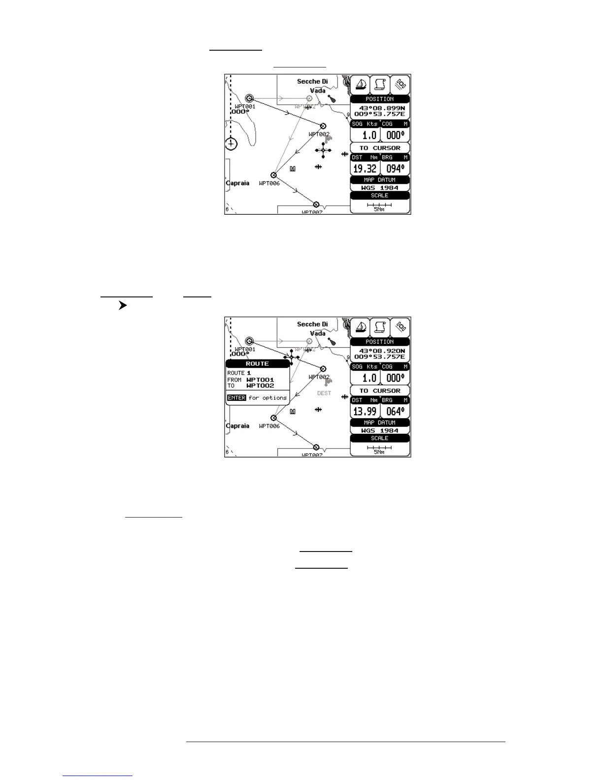 'ENTER' ('CLEAR' otherwise), Waypoint appears in the new position: